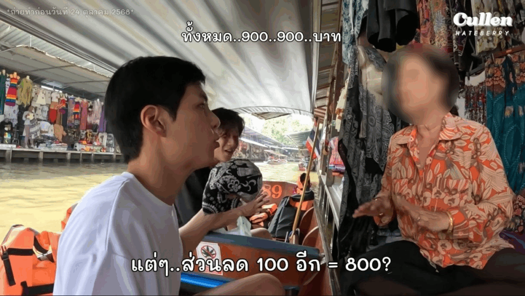 ការជជែកវែកញែកយ៉ាងក្ដៅគគុកបានកើតឡើងពេញបណ្ដាញសង្គម បន្ទាប់ពី YouTuber ឈ្មោះ Cullen និងមិត្តរួមក្រុម Phi Jong ដែលជាម្ចាស់ឆានែល “Cullen HateBerry” បានបង្ហោះវីដេអូដំណើរទៅកាន់ផ្សារបណ្ដែតទឹកមួយក្នុងប្រទេសថៃ។ ក្នុងវីដេអូនោះ ពួកគេបានប្រាប់ថា អ្នកលក់សម្លៀកបំពាក់ម្នាក់បានស្រែកហៅពួកគេ រួចប្រើទំពក់ទាក់ទូករបស់ពួកគេចូលទៅក្នុងហាងតែម្ដង។