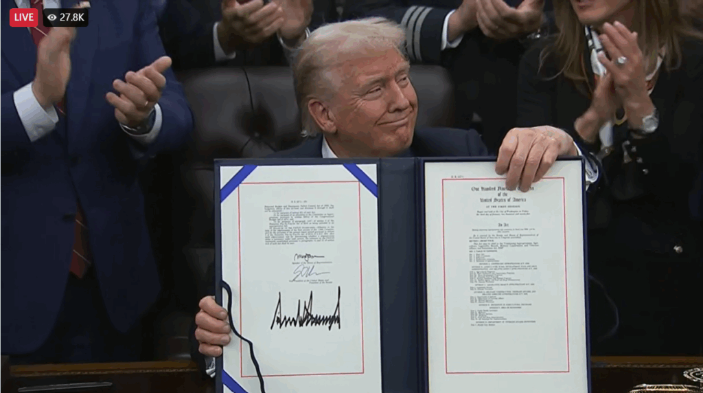 ក្រោយការបោះឆ្នោតសភាបានបញ្ចប់ភ្លាម លោក Mike Johnson បានយកច្បាប់នោះទៅកាន់សេតវិមាន ដើម្បីឲ្យប្រធានាធិបតី ត្រាំ ចុះហត្ថលេខា។ នេះយោងតាមសេចក្តីរាយការណ៍ដែលបានផ្សាយ ៣០ នាទីមុននេះ។