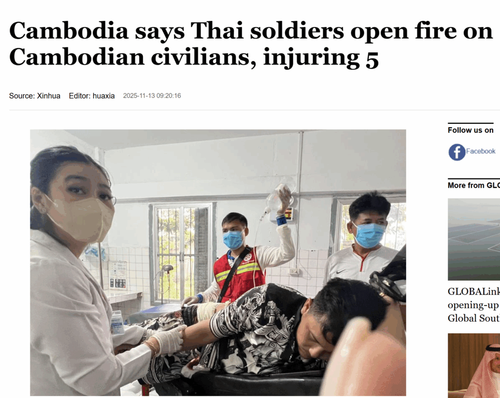 តាមការដកស្រង់សម្តីពីរដ្ឋមន្ត្រីក្រសួងព័ត៌មានកម្ពុជា ដោយសារព័ត៌មានចិន Xinhua បានឱ្យដឹងថា ទាហានថៃបានបើកការបាញ់ប្រហារទៅលើពលរដ្ឋកម្ពុជា នៅក្នុងជម្លោះព្រំដែនដែលកំពុងបន្ត បណ្តាលឱ្យមនុស្សសរុបប្រាំនាក់រងរបួស។