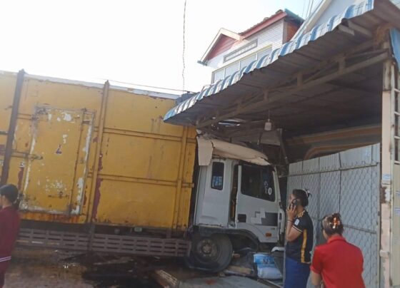 ខេត្តបន្ទាយមានជ័យ៖ គ្រោះថ្នាក់ចរាចរណ៍ធ្ងន់ធ្ងរបានកើតឡើងនៅថ្ងៃទី៣១ ខែមីនា ឆ្នាំ២០២៦ តាមផ្លូវជាតិលេខ៥ នៅភូមិនិមិត្ត២ សង្កាត់និមិត្ត ក្រុងប៉ោយប៉ែត នៅពេលរថយន្តដឹកទឹកកកបុកជាមួយរថយន្តកាមរី រុលទៅបុកសំយ៉ាបផ្ទះខូចខាត និងបណ្តាលរបួសម្នាក់។ អ្នកឃើញហេតុការណ៍បានប្រាប់ថា នៅពេលគ្រោះថ្នាក់កើតឡើង មានរថយន្តម៉ាក់ហ៊ីយិនដាយពាក់ផ្លាក់លេខបាត់ដំបង 3A-3103 ដឹកទឹកកកថ្មគោល បានបើកបរទិសដៅពីកើតមកលិច ឡើងវ៉ាជេញរ៉េចង្កូតទៅបុករថយន្តកាមរី ដែលបើកបរទិសដៅបញ្ច្រាសគ្នាពីលិចមកកើត ពេញទំហឹងរុលទៅបុកសំយ៉ាបផ្ទះបញ្ញើទំនិញវីរៈប៊ុនថាំ…