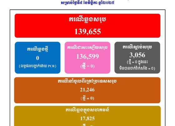 ដំណឹងល្អ! កម្ពុជាបន្តគ្មានករណីឆ្លងកូវីដ-១៩ថ្មី, ជាសះស្បើយ និងស្លាប់ សម្រាប់ថ្ងៃទី១០ វិច្ឆិកា ២០២៥