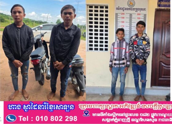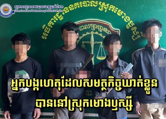 បាត់ដំបង៖ កម្លាំងនគរបាលស្រុកមោងឫស្សី ក្រោមការដឹកនាំរបស់លោកវរសេនីយ៍ឯក ស គឹមឡុង អធិការ បានឃាត់ខ្លួនក្មេងទំនើង ៤ នាក់ កាលពីថ្ងៃទី ៥ ខែវិច្ឆិកា ឆ្នាំ ២០២៥ បន្ទាប់ពីពួកគេបានធ្វើសកម្មភាពកាប់ទៅលើជនរងគ្រោះ ២ នាក់ បណ្តាលឱ្យរបួសធ្ងន់ធ្ងរ។ ហេតុការណ៍នេះបានកើតឡើងនៅយប់ថ្ងៃទី ៤…