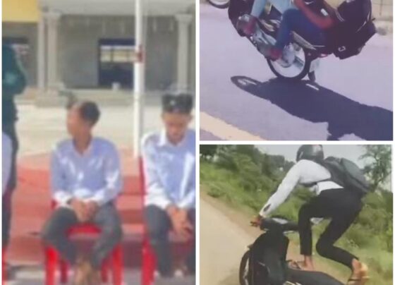 ខេត្តកំពង់ស្ពឺ៖ កម្លាំងនគរបាលស្រុកសាមគ្គីមុនីជ័យបានឃាត់ខ្លួនក្មេងទំនេីងចំនួន៤នាក់ ដែលបានធ្វើសកម្មភាពបង្ហោះម៉ូតូនៅលើផ្លូវសាធារណៈ និងដេញវាយគ្នាក្នុងសាលារៀន។ ព្រឹកថ្ងៃទី៩ ខែធ្នូ ឆ្នាំ២០២៥ មន្ត្រីនគរបាលបានបញ្ជាក់ថា ក្រុមសិស្សទាំង៤នាក់នេះត្រូវបានអញ្ជើញមកអធិការដ្ឋាននគរបាលស្រុក ក្រោយពីបានធ្វើសកម្មភាពរំខានក្នុងសាលាវិទ្យាល័យ ប៊ុន រ៉ានី ហ៊ុនសែនចាន់ថ្នាល។ សិស្សទាំង៤នាក់មានឈ្មោះដូចខាងក្រោម៖ ទិត្យ ឧត្តម (១៦ឆ្នាំ) សិស្សថ្នាក់ទី១១ វុធ ម៉េងលី…