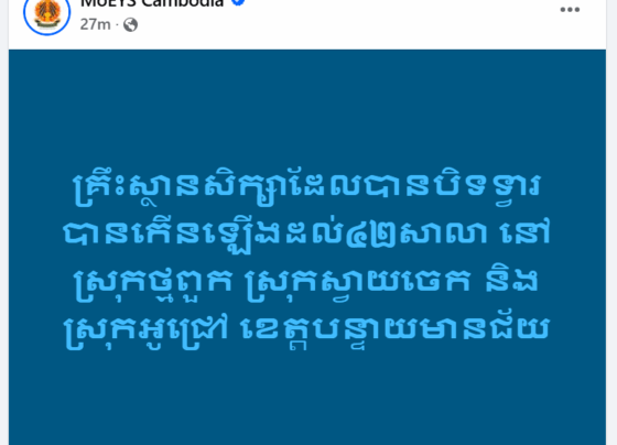 (ភ្នំពេញ)៖ ក្រសួងអប់រំ យុវជន និងកីឡា បានបញ្ជាក់ថា ចំនួនសាលារៀនដែលបានបិទទ្វារបានកើនឡើងដល់៤២សាលា នៅតាមស្រុកថ្មពួក ស្រុកស្វាយចេក និងស្រុកអូជ្រៅ នៃខេត្តបន្ទាយមានជ័យ។ ការបិទទ្វារនេះកើតឡើងក្រោយពីមានការវាយប្រហារពីភាគីថៃនៅតំបន់ព្រំដែនខេត្តព្រះវិហារ និងឧត្តរមានជ័យ។ ក្រសួងការពារជាតិបានរាយការណ៍ថា នៅព្រឹកថ្ងៃទី៨ ខែធ្នូ ឆ្នាំ២០២៥ ចាប់ពីម៉ោង០៥:០៤នាទី យោធាថៃបានបើកការបាញ់ប្រហារមកលើកងកម្លាំងកម្ពុជា នៅតំបន់អានសេះ ខេត្តព្រះវិហារ។…
