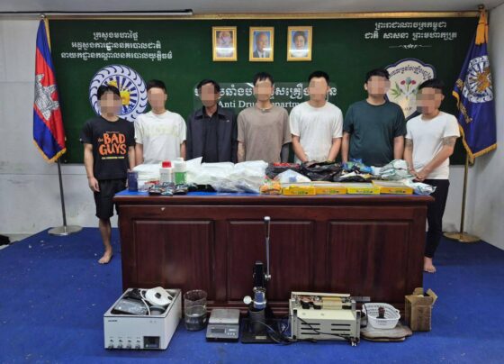 ភ្នំពេញ៖ កម្លាំងប្រឆាំងគ្រឿងញៀនបានចាប់ខ្លួនជនល្មើសជនជាតិចិន៦នាក់ និងខ្មែរម្នាក់ ក្រោយរឹបអូសគ្រឿងញៀន និងសារធាតុផ្សំជិត៤០គីឡូក្រាម។ ប្រតិបត្តិការនេះបានធ្វើឡើងនៅថ្ងៃទី២៩ ខែវិច្ឆិកា ឆ្នាំ២០២៥ វេលាម៉ោង០១:៤០នាទី ដោយកម្លាំងមន្ទីរប្រឆាំងបទល្មើសគ្រឿងញៀន សហការជាមួយស្នងការដ្ឋានរាជធានីភ្នំពេញ។ ចំពោះវត្ថុតាងដែលរឹបអូសបានរួមមាន៖ កូកាអ៊ីនទម្ងន់ ១២,១៧៤.៨៩ក្រាម, អ៊ិចស្ត្រាស៊ី (MDMA) ទម្ងន់៥,៨២១.៥៨ក្រាម, រុក្ខជាតិក្រៀម (កញ្ចា) ទម្ងន់…