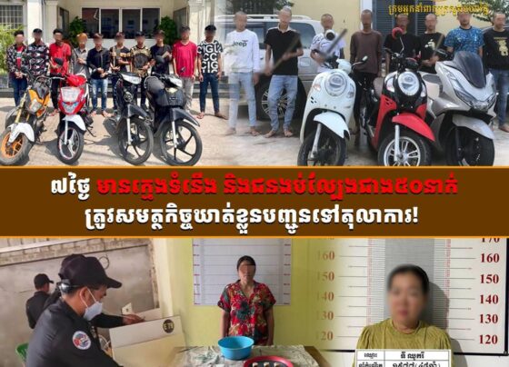 ៧ថ្ងៃក្នុងខែវិច្ឆិកា៖ សមត្ថកិច្ចឃាត់ខ្លួនក្មេងទំនើង និងជនងប់ល្បែងជាង៥០នាក់