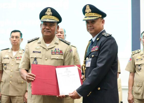 ភ្នំពេញ៖ នាយឧត្តមសេនីយ៍ ស ថេត អគ្គស្នងការនគរបាលជាតិ បានអញ្ជើញធ្វើពិធីប្រកាសចូលកាន់តំណែងថ្មីរបស់មេដឹកនាំថ្នាក់ខ្ពស់ពីររូបនៅអគ្គស្នងការដ្ឋាននគរបាលជាតិ។ ក្នុងពិធីដ៏វិចិត្រដែលប្រារព្ធឡើងនៅរសៀលថ្ងៃទី២០ ខែមីនា ឆ្នាំ២០២៦ លោកអគ្គស្នងការ ស ថេត ដែលតំណាងឱ្យលោកអភិសន្ដិបណ្ឌិត ស សុខា ឧបនាយករដ្ឋមន្ដ្រី រដ្ឋមន្ដ្រីក្រសួងមហាផ្ទៃ បានធ្វើជាអធិបតីក្នុងពិធីប្រកាសផ្ទេរភារកិច្ច និងតែងតាំងមុខតំណែងនាយនគរបាលថ្នាក់ឧត្តមសេនីយ៍។ មេដឹកនាំថ្មីដែលត្រូវបានប្រកាសចូលកាន់តំណែងនោះ…