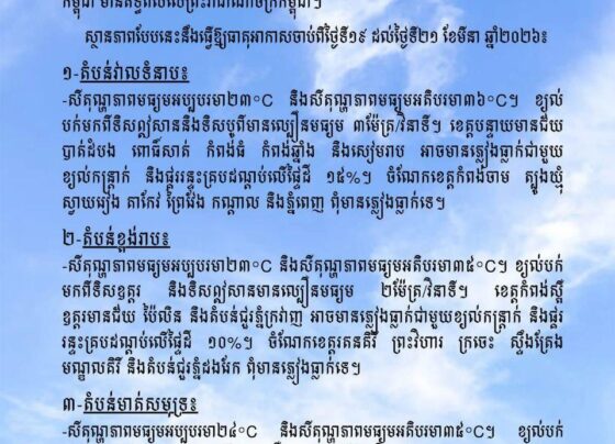 ភ្នំពេញ៖ រដ្ឋបាលរាជធានីភ្នំពេញបានចេញសេចក្តីណែនាំជាផ្លូវការស្តីពីការរៀបចំបុណ្យចូលឆ្នាំថ្មីប្រពៃណីជាតិឆ្នាំមមី អដ្ឋស័ក ព.ស.២៥៧០ គ.ស.២០២៦ នៅទីក្រុងភ្នំពេញ ដើម្បីធានាឱ្យពិធីបុណ្យធ្វើឡើងដោយអធិកអធម និងរក្សាបាននូវវប្បធម៌ប្រពៃណីដ៏ល្អផូរផង់របស់ជាតិ។ យោងតាមសេចក្តីណែនាំ បុណ្យចូលឆ្នាំខ្មែរឆ្នាំ២០២៦ នឹងប្រព្រឹត្តទៅចាប់ពីថ្ងៃទី១៤ ដល់ទី១៦ ខែមេសា ឆ្នាំ២០២៦ ដោយមានដំណើរសង្ក្រាន្តដូចខាងក្រោម៖ ថ្ងៃទី១៤ មេសា ២០២៦ (ថ្ងៃអង្គារ ១២រោច…