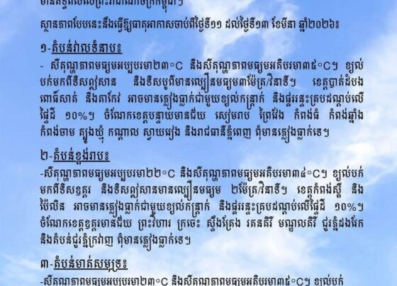 ខេត្តស្ទឹងត្រែង៖ ក្រុមការងារអន្តរមន្ទីរដែលមានសមាសភាពពីមន្ទីរពាណិជ្ជកម្មខេត្តស្ទឹងត្រែង មន្ទីររ៉ែនិងថាមពលខេត្ត មន្ទីរឧស្សាហកម្ម វិទ្យាសាស្ត្រ បច្ចេកវិទ្យានិងនវានុវត្តន៍ខេត្ត និងសាខាការពារអ្នកប្រើប្រាស់ កិច្ចការប្រកួតប្រជែង និងបង្ក្រាបការក្លែងបន្លំ បានចុះផ្សព្វផ្សាយគោលការណ៍គ្រប់គ្រងប្រេងឥន្ធនៈដល់ម្ចាស់ស្ថានីយ៍ក្នុងខេត្តស្ទឹងត្រែងនៅថ្ងៃទី១១ ខែមីនា ឆ្នាំ២០២៦។ ក្រុមការងារបានណែនាំឱ្យម្ចាស់ស្ថានីយ៍ប្រេងឥន្ធនៈអនុវត្តតាមសេចក្តីជូនដំណឹងរបស់រដ្ឋបាលខេត្តស្ទឹងត្រែង លេខ០០៣/២៦ សណន ចុះថ្ងៃទី៧ ខែមីនា ឆ្នាំ២០២៦ ស្តីពីការអនុវត្តវិធានការគ្រប់គ្រងហានិភ័យនៃការទិញ-លក់ប្រេងឥន្ធនៈ និងសុវត្ថិភាពអ្នកប្រើប្រាស់។…