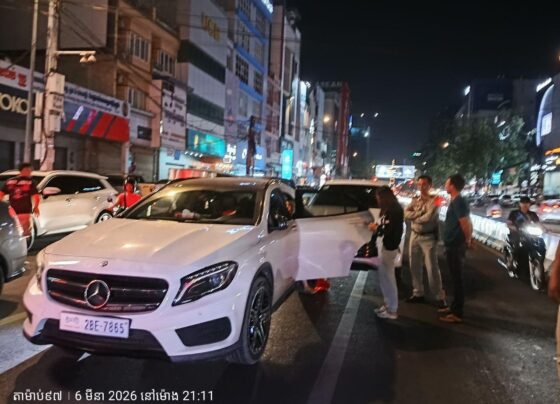 ភ្នំពេញ៖ គ្រោះថ្នាក់ចតាចរណ៍មួយបានកើតឡើងយប់ថ្ងៃទី៦មីនា នៅតាមបណ្ដោយផ្លូវ២៨៩ សង្កាត់បឹងកក់ទី២ ខណ្ឌទួលគោក នៅពេលរថយន្តម៉ាក BYD ពាក់ស្លាកលេខភ្នំពេញ 2CG-3575 បើកបុកពីក្រោយរថយន្តម៉ាកសឺដេស ពាក់ស្លាកលេខភ្នំពេញ 2BE-7865 ដែលកំពុងឈប់រងចាំភ្លើងស្តុប។ ហេតុការណ៍នេះកើតឡើងកាលពីវេលាម៉ោង ៩ យប់ នៅត្រង់ចំណុចស្តុបអតីតរង្វង់មូលទួលគោក។ រថយន្តទាំងពីរបានរងការខូចខាតយ៉ាងធ្ងន់ធ្ងរទាំងសងខាង។ ប្រភពព័ត៌មានពីកន្លែងកើតហេតុបានឲ្យដឹងថា រថយន្ត…