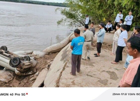 ខេត្តត្បូងឃ្មុំ ៖ រថយន្តមួយគ្រឿងម៉ាក Highlander ដឹកមនុស្ស ៤នាក់ បានបើកបរជ្រុលចង្កូតធ្លាក់ច្រាំងទន្លេក្រឡាប់បះជើងទ្រមេឃ កាលពីយប់ថ្ងៃទី១៦ ខែវិច្ឆិកា ឆ្នាំ២០២៥ បន្ទាប់ពីចេញពីពិធីមង្គលការមួយនៅស្រុកក្រូចឆ្មារ។ ហេតុការណ៍នេះ សំណាងល្អមិនបណ្តាលឲ្យមនុស្សទាំង ៤នាក់រងរបួសឡើយ ខណៈរថយន្តប៊ិះធ្លាក់ចូលទន្លេ បើគ្មានបាវខ្សាច់យក្សទប់ជាប់នោះ។ មន្ត្រីអាជ្ញាធរស្រុកបានឲ្យដឹងនៅរសៀលថ្ងៃទី១៧ ខែវិច្ឆិកាថា ហេតុការណ៍នេះបានកើតឡើងនៅវេលាម៉ោង ៨យប់…