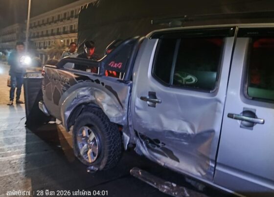 ភ្នំពេញ៖ ហេតុការណ៍រថយន្តបុករបាំងថ្មពុះចែកទ្រូងផ្លូវបានកើតឡើងនៅព្រលឹមថ្ងៃទី២៩ ខែមីនា ឆ្នាំ២០២៦ នៅតាមបណ្តោយផ្លូវព្រះមុនីវង្ស កែងផ្លូវ១៨២ សង្កាត់បឹងប្រលិត ខណ្ឌ៧មករា រាជធានីភ្នំពេញ។ តាមប្រភពព័ត៌មានបានឱ្យដឹងថា បុរសម្នាក់បើករថយន្តម៉ាក BYD ពណ៌ស ពាក់ផ្លាកលេខភ្នំពេញ 2CJ-4424 ក្នុងល្បឿនលឿន បានរអិលចង្កូតទៅបុករបាំងថ្មពុះចែកទ្រូងផ្លូវ បណ្តាលឱ្យរបាំងថ្មពុះខ្ទាតចេញជួរចំនួនមួយផ្ទាំង។ រថយន្តរងការខូចខាតយ៉ាងខ្លាំងនៅផ្នែកខាងឆ្វេង ហើយមិនអាចបន្តធ្វើដំណើរទៅមុខបានទៀត។…